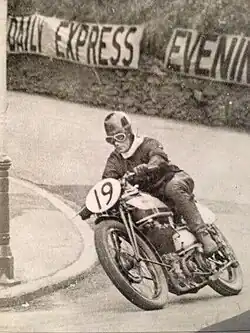 Following on from the dramatic win by Stanley Woods in the 1935 Senior TT Race, the 1936 Junior TT Race proved to be highly controversial and was marred by disqualification and protest. As Moto Guzzi were involved in war production for the crisis in Abyssinia, Stanley Woods rode for Velocette in the 1936 Junior TT but retired at Sulby on lap 1 with engine problems. After leading for five laps, Jimmie Guthrie was forced to stop between Hillberry and Signpost Corner to replace the drive chain.[1] Although Jimmie Guthrie continued in 2nd place the lead passed to Norton team-mate Freddie Frith who had joined the team after winning the 1935 Junior Manx Grand Prix. At Parliament Square in Ramsey on lap 6, Jimmie Guthrie was 'black-flagged' for receiving outside assistance and disqualified. Guthrie denied the charge, however, and continued the race to finish in fifth place which was won by Freddie Frith to record his first Isle of Man TT win at an average race speed of 80.14 mph (128.97 km/h). The Norton race team protested the disqualification and Jimmie Guthrie was posted in 5th place in the final race classification and was awarded 2nd place prize money.[1]