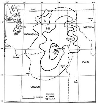 - ^ "Walla Walla Valley Hit by Quakes". Spokane, Washington: Spokane Daily Chronicle. Archived from the original on July 11, 2021. Retrieved February 26, 2018.