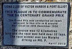 The 1937 Australian Grand Prix is a name which has been applied retrospectively to the 1936 South Australian Centenary Grand Prix, a motor race held on the Port Elliot-Victor Harbor road circuit in South Australia on Boxing Day, 26 December 1936.[3]