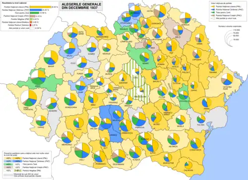 General elections were held in Romania in December 1937.[1] The Chamber of Deputies was elected on 20 December, whilst the Senate was elected in three stages on 22, 28 and 30 December.[1] Voting was by universal male suffrage,[2] making them the last elections held before women could vote.