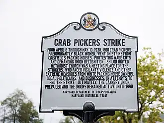 - ^ a b "Historical marker wanted to remember the 1938 crab pickers' strike in Crisfield". Bay to Bay News. 2022-06-06. Retrieved 2024-12-09.