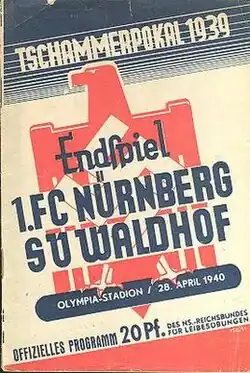 The 1939 Tschammerpokal Final decided the winner of the 1939 Tschammerpokal, the 5th season of Germany's knockout football cup competition. It was played on 28 April 1940 at the Olympiastadion in Berlin.[2] 1. FC Nürnberg won the match 2–0 against Waldhof Mannheim, to claim their 2nd cup title.