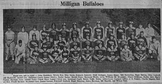 - ^ Doug Bean (October 27, 1940). "Milligan Mauls Emory, 34-0: Buffs Remain On Exclusive Unbeaten List". Sunday Press-Chronicle (Johnson City, TN). p. 8 – via Newspapers.com.