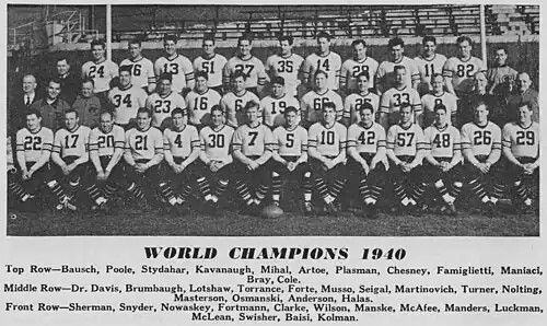 The "1940 All-Professional Team" was selected by National Professional Football Writers' Association.[9] The New York Giants and Washington Redskins were each represented by four members of the 22-man squad. There were also 22 players added to an "Honorable Mention" list.[9]