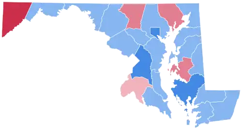 | Anne Arundel | 13,116 | 58.54% | 9,204 | 41.08% | 85 | 0.38% | 3,912 | 17.46% | 22,405 |