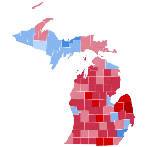 | Gratiot | 8,661 | 69.19% | 3,825 | 30.56% | 30 | 0.24% | 1 | 0.01% | 34 | 0.27% | 4,836 | 38.64% | 12,517 |
