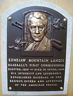 - ^ "Plaque to Landis In Hall of Fame". Harrisburg Telegraph. Harrisburg, Pennsylvania. AP. June 14, 1946. p. 22. Retrieved October 13, 2019 – via newspapers.com.