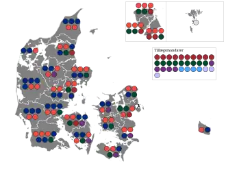 Party Votes % Seats +/– Denmark proper Social Democrats 671,755 32.78 48 –18 Venstre 479,158 23.38 38 +10 Conservative People's Party 373,688 18.24 26 –5 Communist Party of Denmark 255,236 12.46 18 New Danish Social Liberal Party 167,073 8.15 11 –2 Danish Unity 63,760 3.11 4 +1 Justice Party of Denmark 38,459 1.88 3 +1 Independents 55 0.00 0 0 Total 2,049,184 100.00 148 0 Valid votes 2,049,184 99.70 Invalid/blank votes 6,131 0.30 Total votes 2,055,315 100.00 Registered voters/turnout 2,381,983 86.29 Faroe Islands Independent (People's Party ) 3,990 46.19 1 0 Social Democratic –Self-Government 2,521 29.18 0 0 Independent (Union Party ) 2,127 24.62 0 0 Total 8,638 100.00 1 0 Valid votes 8,638 99.86 Invalid/blank votes 12 0.14 Total votes 8,650 100.00 Registered voters/turnout 15,084 57.35 Source: Nohlen & Stöver