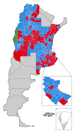 ![]() Most voted party by province (left) and department (right). | ||||||||||||||||||||||||||||||