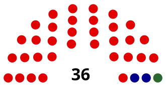 | Party | Votes | % | Swing | Seats won | Seats held | Change | ||