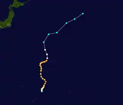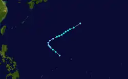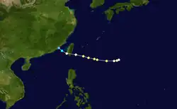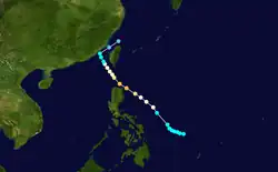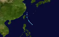 After passing Manila, the storm emerged from the coast of Zambales towards the South China Sea, starting to shift more towards the northwest and eventually north and northeast, all the way moving parallel to the coast of Luzon. The typhoon weakened into a tropical storm and recurved west of the Batanes group of islands and passed through the Bashi Channel south of Taiwan and continued north-eastward towards Miyakojima and the southern Japanese islands and eventually dissipated on 29 December. No data is available on what happened to the system after turning post-tropical.