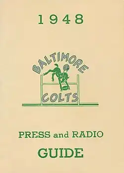 - ^ Baltimore Colts vs. Frisco Forty-Niners, Oct 10. Baltimore, MD: Baltimore Colts Football Club, Inc., 1948; pp. 16–17.