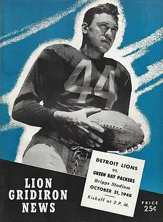 Left halfback "Bullet Bill" Dudley is featured on the October 31 program.