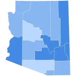 As of the 2024 presidential election, this is the last election in which Yavapai County voted for a Democratic presidential candidate.[5] Maricopa County would not vote Democratic again until 2020. Coconino County would not vote Democratic again until 1992, Navajo County not until 1976, while Apache, Cochise, Mohave and Pima Counties would next vote Democratic for Lyndon Johnson in 1964.[6]
