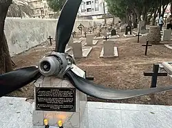 In 1994 a hydrographic survey of the area to the east of Muhurraq Island off the end of the runway located a wing of an aircraft subsequently identified as that of DC-4 F-BBDM. A seabed inspection of the area located two of the Pratt & Whitney radial engines and three bent propellers together with assorted aircraft debris consisting of part of the tailplane, electric wiring, small passenger items and broken bottles. The Christian Cemetery Committee responsible for the maintenance of the Old Christian Cemetery in which the 86 casualties had originally been interred approved the idea of a permanent memorial. A joint venture between the Bahrain-based diving company TECHDIVE and Royal Navy divers recovered the least damaged propeller and after sandblasting and painting, it was mounted in the cemetery. In December the memorial was formally dedicated by the French Ambassador, various church dignitaries and those involved in its recovery.[10]