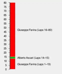 - ^ a b c Dorino Serafini qualified and drove 47 laps of the race in the #48 Ferrari. Alberto Ascari, whose own vehicle had already retired, took over Serafini's car for the remaining 33 laps of the race. They shared the 6 points for second place.[4]