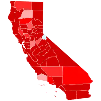 Despite the polls, Douglas was confident that the Democratic registration edge would lead her to victory, so much so that she offered a Roosevelt staffer a job in her senatorial office.[104] On election day, November 7, 1950, Nixon defeated Douglas by 59 percent to 41.[105] Of California's 58 counties, Douglas won only five, all in Northern California and with relatively small populations;[j][106] Nixon won every urban area.[107] Although Warren defeated Roosevelt by an even larger margin, Nixon won by the greatest number of votes of any 1950 Senate candidate. Douglas, in her concession speech, declined to congratulate Nixon.[105] Marcantonio was also defeated in his New York district.[108]