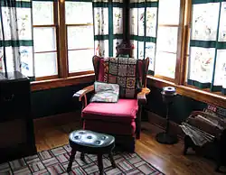 In designing their house, the LaFlams incorporated state-of-the-art amenities such as central heating, public water, and modern bathroom and kitchen appliances, including a refrigerator and built-in cabinets. The burgeoning industry of the late 1940s enabled the LaFlams to purchase a ready-cut house (see prefabricated home) modeled from architectural plans and specifications that was inexpensive and easily shipped to the building site. The one-story design, attached garage, plain overhanging eaves, and simple white clapboard siding represent the hallmarks of mid-century house design. The LaFlams detailed the windows and doors with broad, stained wood trim, which is the kind of simple detailing available in a lumber-rich place like Vermont. The house, which is neither a traditional Cape nor a typical ranch, has characteristics of do-it-yourself construction, with an engagingly awkward mix-and-match of new and old, typical and idiosyncratic, details. In the summer of 2000, the house was opened to the public as a temporary exhibition entitled "The Fabulous 50's: Welcome Home to Postwar Vermont".[2] In 2002, the exhibition was extended through 2005.[3]