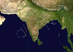- ^ a b c d e f g h i j k l m n o p India Weather Review Annual Summary Part C Storms and Depressions 1950 (PDF) (Report). India Meteorological Department. 1951. pp. 1–12. Archived from the original (PDF) on 2019-06-14. Retrieved June 24, 2020.