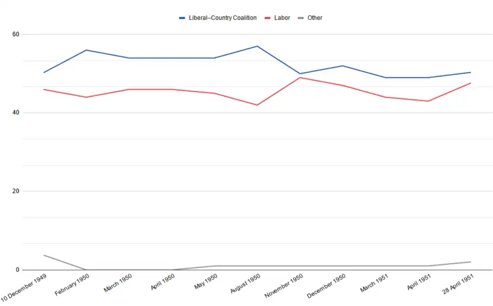 - ^ a b c "Gallup Poll Gives It To Menzies". The Daily News. Vol. LXIX, no. 23, 724. Western Australia, Australia. 27 April 1951. p. 1. Retrieved 15 June 2023 – via National Library of Australia.