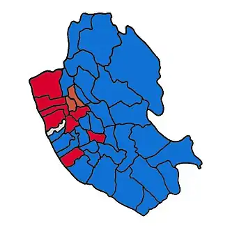 ![]() Map of Liverpool showing wards won (first placed party)[1] | ||