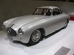 Mercedes, led again by their pre-war team manager Alfred Neubauer arrived with a trio of W194 prototypes of what was to become the iconic '300SL' (Sport Leicht). To fit, its new 3.0L S6 engine was tilted at a 50° angle, and tuned down a fraction to 165 bhp for better durability.[2] Along with Neubauer were his pre-war team-drivers Hermann Lang and Karl Kling. Another pre-war Mercedes hero, Rudolf Caracciola might have driven, but had been side-lined by a serious accident that was to end his illustrious career.[2]