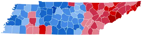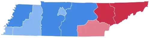 For over a century after the Civil War, Tennessee was divided according to political loyalties established in that war. Unionist regions covering almost all of East Tennessee, Kentucky Pennyroyal-allied Macon County, and the five Western Highland Rim counties of Carroll, Henderson, McNairy, Hardin and Wayne[4] voted Republican — generally by landslide margins — as they saw the Democratic Party as the "war party" who had forced them into a war they did not wish to fight.[5] Contrariwise, the rest of Middle and West Tennessee who had supported and driven the state's secession was equally fiercely Democratic as it associated the Republicans with Reconstruction.[6] After the disfranchisement of the state’s African-American population by a poll tax was largely complete in the 1890s,[7] the Democratic Party was certain of winning statewide elections if united,[8] although unlike the Deep South Republicans would almost always gain thirty to forty percent of the statewide vote from mountain and Highland Rim support.