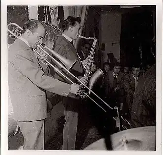 ![]() Luciano La Neve, trombone, and Gigi Tognoli, saxophone during a jam session in Italy | |