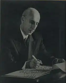 In the aftermath of World War I there was widespread political dissatisfaction with the royalty terms of the British petroleum concession, under the Anglo-Persian Oil Company (APOC), whereby Persia received 16% of "net profits".[19] In 1921, after years of severe mismanagement under the Qajar dynasty, a coup d'état (allegedly backed by the British) brought a general, Reza Khan, into the government. By 1923, he had become prime minister, and gained a reputation as an effective politician with a lack of corruption.[45] By 1925 under his influence, Parliament voted to remove Ahmad Shah Qajar from the throne, and Reza Khan was crowned Reza Shah Pahlavi, of the Pahlavi dynasty. Reza Shah began a rapid and successful modernization program in Persia, which up until that point had been considered to be among the most impoverished countries in the world.[45] Nevertheless, Reza Shah was also a very harsh ruler who did not tolerate dissent. By the 1930s, he had suppressed all opposition, and had sidelined the democratic aspects of the constitution. Opponents were jailed and in some cases even executed. While some agreed with his policies, arguing that it was necessary as Iran was in such turmoil, others argued that it was unjustified.[45] One such opponent was a politician named Mohammad Mosaddegh, who was jailed in 1940. The experience gave him a lasting dislike for authoritarian rule and monarchy, and it helped make Mosaddegh a dedicated advocate of complete oil nationalization in Iran.[15]