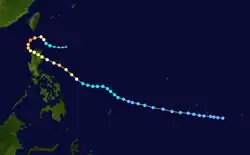 Mamie formed east of the Philippines on July 30. It moved east and reached peak intensity on August 1.