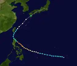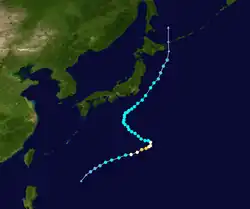 Judy formed on May 28, to the east of the Philippines. The next day, the storm started moving west, then later moving northwest. Over the following days, the storm moved northwest, albeit curving. On June 4, the typhoon hit the Philippines, reaching its peak intensity in Luzon. The storm later curved north, skirting Taiwan. The storm started losing speed, then increased speed on June 6. The storm later curved north, directly hitting Japan. Later dissipating the next day.[2] Judy damaged multiple areas in Japan, causing 37 deaths, 17 injuries, and leading 56 people missing. The storm also destroyed 1802 houses, inundated another 33 thousand, and damaged 139 ships.[3][4]