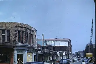 This large, violent tornado touched down at 4:21 p.m. CST near Smiths Creek, Michigan, southwest of Port Huron. It moved northeast and quickly strengthened before hitting Port Huron, resulting in widespread F3 and F4 damage. Two people were killed in Port Huron and 68 more were injured. Close to 400 homes were damaged or destroyed in the United States with monetary losses totaling $2.6 million ($24.4 million 2018 USD).[5] Crossing the St. Clair River, the 1-mile-wide (1.6 km) tornado moved into Canada just south of Sarnia Harbour.[10][5] Moving to the northeast, the tornado moved directly through Sarnia, Ontario, where almost 100 commercial buildings sustained damage.[8] At least 150 homes on the more suburban outskirts of the city were damaged and in some instances reduced to rubble. Five people were killed in Sarnia. Before exiting Sarnia, the tornado curved even further to the northeast and began to weaken, as its path narrowed to approximately 30 m (33 yd) across.[8] The tornado then restrengthened as it moved into rural Lambton and Middlesex Counties, where more F4 damage was inflicted upon farmsteads and homes near Nairn, before it dissipated south of Stratford.[5] This suggested a total path length exceeding 120 km (75 mi), though it is highly probable that this damage path was made up of more than one tornado, possibly as many as four.[11] Overall, the tornado was on the ground for 2 hours and 39 minutes, tracked 75–90 miles (121–145 km), and was 1–1.5 miles (1.6–2.4 km) wide at its peak. Seven people were killed, 117 others were injured, and damages were estimated $17.6 million (1953 USD).[3][8][9]