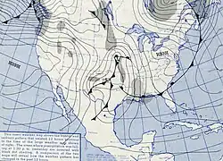 On December 5, 1953, as a warm front retreated northward across Mississippi, temperatures in the warm sector rose steadily. By sunrise, temperatures were already in the low 50s °F—ten to fifteen degrees above average–despite overcast conditions. Just before noon CST (18:00 UTC), southeasterly winds were measured at 17 mph (27 km/h) in Vicksburg. Some hours later, the local dew point rose to nearly 70 °F (21 °C), along with a temperature of 72 °F (22 °C). Meanwhile, favorable wind shear arrived to promote the growth of severe thunderstorms, along with the conditions necessary for tornadogenesis. At 1:30 p.m. CST (19:30 UTC), the Severe Local Storms Unit of the United States Weather Bureau in Washington, D.C., released a severe weather bulletin indicating the likelihood of tornado-producing storms over portions of East Texas, southern Arkansas, northern Louisiana, and western Mississippi.[1][2]