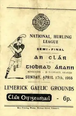 | 17 April 1955 Semi-final | Tipperary | 3–8 – 0–6 | Clare | Gaelic Grounds, Limerick |