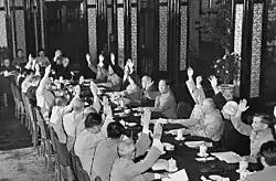 The 1954 Constitution of the People's Republic of China was adopted and enacted on September 20, 1954, through the first session of the First National People's Congress in Beijing.[1] This constitution was amended and formulated on the basis of the Common Program of the Chinese People's Political Consultative Conference, which served as a provisional constitution in 1949, and is the first constitution of the People's Republic of China. The Constitution of the People's Republic of China is the fundamental law of the People's Republic of China and has the highest legal effect.