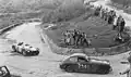 With the British attack failing to make it back to Brescia, it was left to the Germans to provide some opposition to the Italian teams. Encountering a lowered gate at a railway crossing, the Porsche driver, Hans Herrmann drove his low 550 Spyder under it, narrowly missing an express train. This daring act gave Porsche a first in class and an amazing sixth overall.[2][8]
