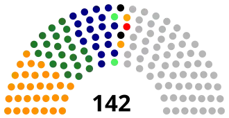 Parliamentary elections were held in Syria on 24 and 25 September 1954, with a second round held between 4 and 5 October.[1] Independent candidates emerged as the largest bloc in Parliament, whilst the People's Party became the largest single party, with 30 seats. The Muslim Brotherhood did not participate as such.[2] There were 64 independents, of whom some were close to the Muslim Brotherhood or to other parties, which explains the discrepancies in the results in various books, and there were also 9 tribal deputies. Some sources mention 140 deputies in total, others 142.[3]