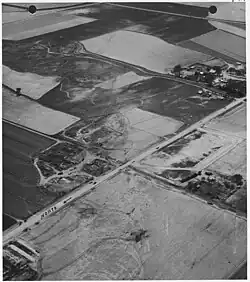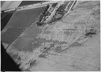 Northeast of Scottsbluff, near the end of the tornado's path, cycloidal debris marks were documented in aerial shots after the event.[24] At the time, cycloidal marks were an unknown phenomenon, and the marks left by the Scottsbluff tornado were the subject of a detailed study.[25] The cycloidal marks, in conjunction with radar, were used to determine the forward speed of the tornado and showed the tornado's abrupt movements.[26][27]