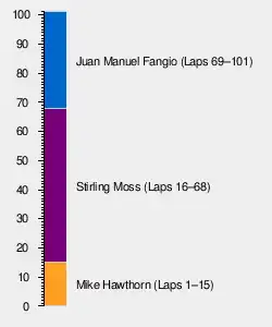 - Car #3: Eugenio Castellotti (80 laps) and Alfonso de Portago (12 laps).
