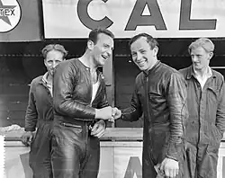 Bill Lomas (left) and John Surtees (right), the 1956 350cc and 500cc World Champion respectively.
