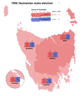 - Assembly Election Results, 1956, Parliament of Tasmania.