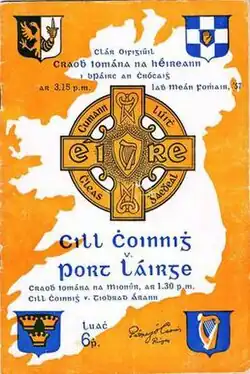 The 1957 All-Ireland Senior Hurling Championship Final was the 70th All-Ireland Final and marked the culmination of the 1957 All-Ireland Senior Hurling Championship, an inter-county hurling tournament for the top teams in Ireland. The match was held at Croke Park, Dublin, on 1 September 1957, between Kilkenny and Waterford. The Munster champions lost to their Leinster opponents on a score line of 4-10 to 3-12.[2] It was the fifth time for Kilkenny to win a final by a point. An interesting feature of this match was the participation of the English actor John Gregson in the Kilkenny team's parade as part of his role as a GAA player in the film Rooney.[3][4]