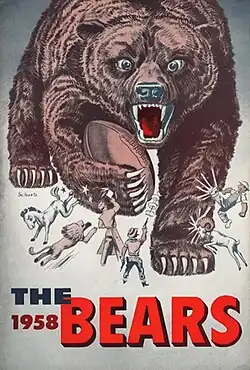 The 1958 season was the Chicago Bears ' 39th in the National Football League . The team improved on their 5–7 record from 1957 and finished with an 8–4 record under George Halas ; the owner took over again as head coach in February for the reassigned Paddy Driscoll .[ 1] Halas's team improved to a respectable second place tie.