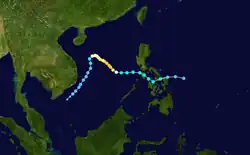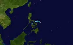 Typhoon Kathy developed just east of the Philippines on October 21. It moved across the islands and entered the South China Sea. There, the system strengthened, and subsequently dissipated on October 27.
