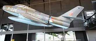 ![]() An identical F-84F Thunderstreak of the Dutch Air Force, on display at the Nationaal Militair Museum in Soesterberg | |