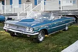 Ford rolled into 1963 with a NASCAR-winning Galaxie and a 427 CID (7 L) FE V8 sporting either 410 hp (306 kW) or 425 hp (317 kW). A new hardtop coupe body was added to the Galaxie range, and the base model became known as the 300.