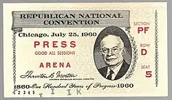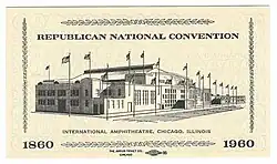 The 1960 Republican National Convention was held in Chicago, Illinois, from July 25 to July 28, 1960, at the International Amphitheatre. It was the 14th and most recent time overall that Chicago hosted the Republican National Convention, more times than any other city.