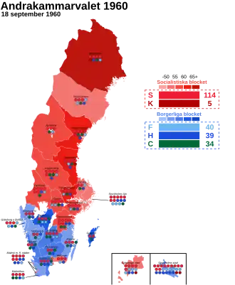 General elections were held in Sweden on 18 September 1960.[1] The Swedish Social Democratic Party remained the largest party, winning 114 of the 232 seats in the Andra kammaren of the Riksdag.[2]
