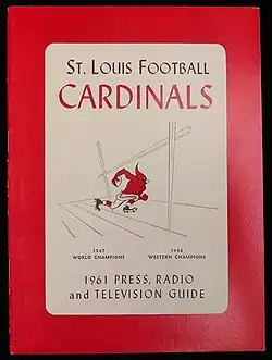 The 1961 St. Louis Cardinals season marked the team's 42nd year in the National Football League (NFL) and their second in St. Louis. The team improved on their previous year's 6–5–1 record, winning seven games.[1] Despite the improvement, they finished fourth in the seven-team Eastern Conference and failed to qualify for the playoffs (NFL title game) for the thirteenth consecutive season. The Cardinals were led by fourth-year head coach Pop Ivy, who was replaced after a 5–7 start by the trio of Chuck Drulis, Ray Prochaska, and Ray Willsey.