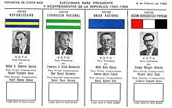 - ^ a b c d e f g h Hernández Naranjo, Gerardo. "Reseña de las elecciones presidenciales de 1962" (PDF) (in Spanish). Archived from the original (PDF) on 16 February 2016. Retrieved 13 April 2016.